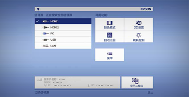 投影机开机后直接进入主屏幕。您可以在主屏幕上轻松进行如色彩模式、3D功能等设置。