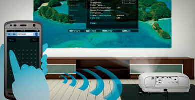 在使用“iProjection”时,您的智能设备可以作为投影机遥控器使用。例如:当您想选择一种适宜使用环境的画面时,您可以进行触控操作轻松进入导航菜单中选择“画质预设”。