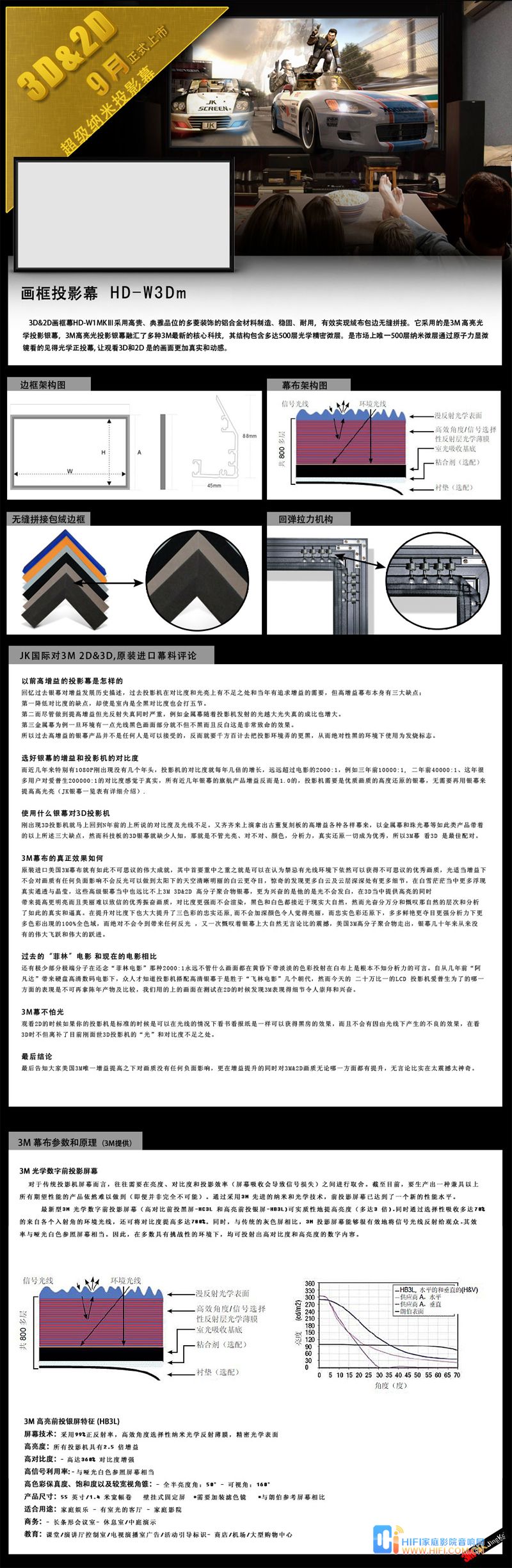 3D&2D超级纳米投影幕+铝合金/植绒边框