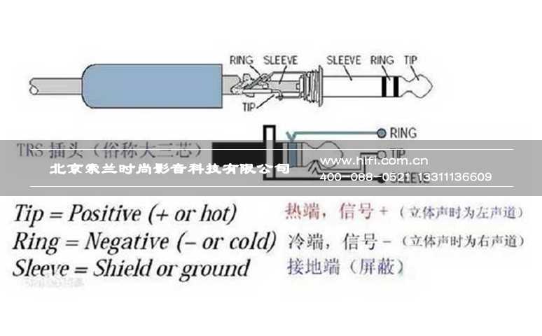 2.5mm的TRS接头以前在手机耳机上比较流行,但现在已经不多见了,耳机接口基本被3.5mm接口一统江湖。而6.3mm的接头在很多专业设备和高档耳机上比较常见,但现在有不少高档耳机也逐渐开始改用3.5mm接头。TRS的含义是Tip(signal)、Ring(signal)、Sleeve(ground),分别代表了这种接头的3个触点,我们看到的就是被两段绝缘材料隔离开的三段金属柱。因此,3.5mm接头和6.3mm接头也被人称为“小三芯”和“大三芯”。
