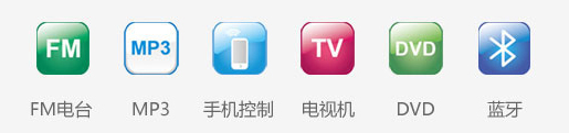 蓝牙、FM电台 、U盘/TF卡MP3音乐, DVD/电视