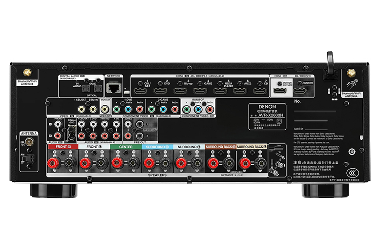 配置支持直通的eARC、8个HDMI输入接口和2个输出接口(全部接口支持全HDCP 2.3),与新高清和超高清电视机、蓝光播放机和游戏机无缝兼容。前面板USB方便播放MP3和高解析度音频格式(WAV、FLAC、ALAC和DSD 2.8/5.6 MHz文件)。HEOS允许通过蓝牙、Apple AirPlay 2。