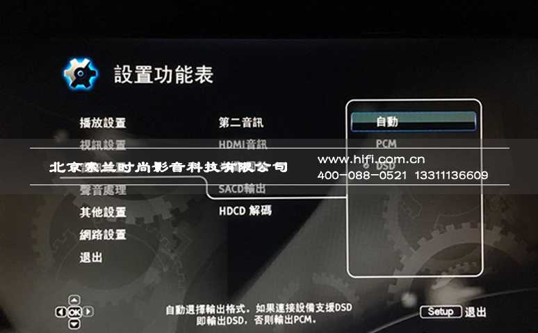 此外,HDMI的输出音讯格式也要先选择,若选择PCM,那麽SACD层的DSD讯号会转换成PCM讯号输出。