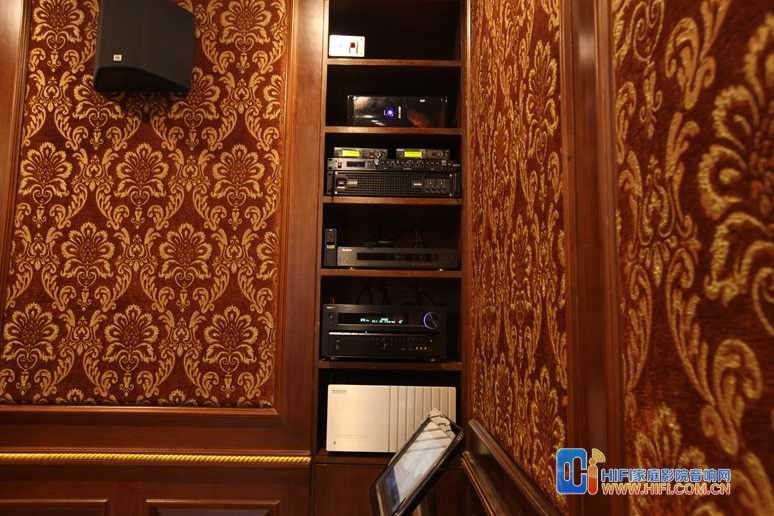 按照THX标准摆放JBL ARRAY 880中置音箱ARRAY 1500低音炮和卡拉Ok的 ARRAY 1000 主音箱。JBL的ARRAY 系列是极为牛B的家庭影院音箱是JBL影院王牌系列Synthesis 中的重要主音箱。
