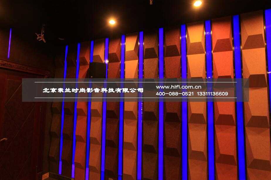4、两侧的墙面造型简单,主要依靠光影效果来营造蹦迪和卡拉OK时的气氛。但墙面内部隐藏着设计精密的声学控制单元和隔音层,主要是可调整型的声学扩散体,用于扩散中高频同时利用板型共振吸收低频,排列组合通过实际应用和声学测试仪器来确定位置。由于甲方的要求非常严格不但需要声学的测试指标达到要求,同时也要通过甲方的实际体验都达到满意效果再进行最后的封装。最终经过一个多月的反复调整,得到让甲方满意的声学效果。