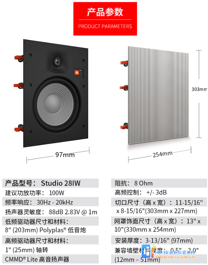 http://www.hifi.com.cn/ 来源:索兰影音 关键词:JBL STUDIO 2 8IW嵌入式影院音箱