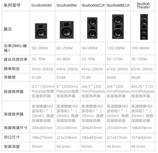 JBL Studio6入墙定制系列 6IW 8IW 66LCR 88LCR Theater