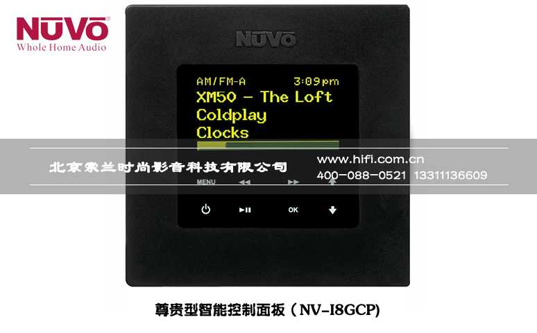 • 控制面板支持中文显示功能,并可配套使用同样支持中文显示的NuVo音乐服务器和NuVo高端双源收音机