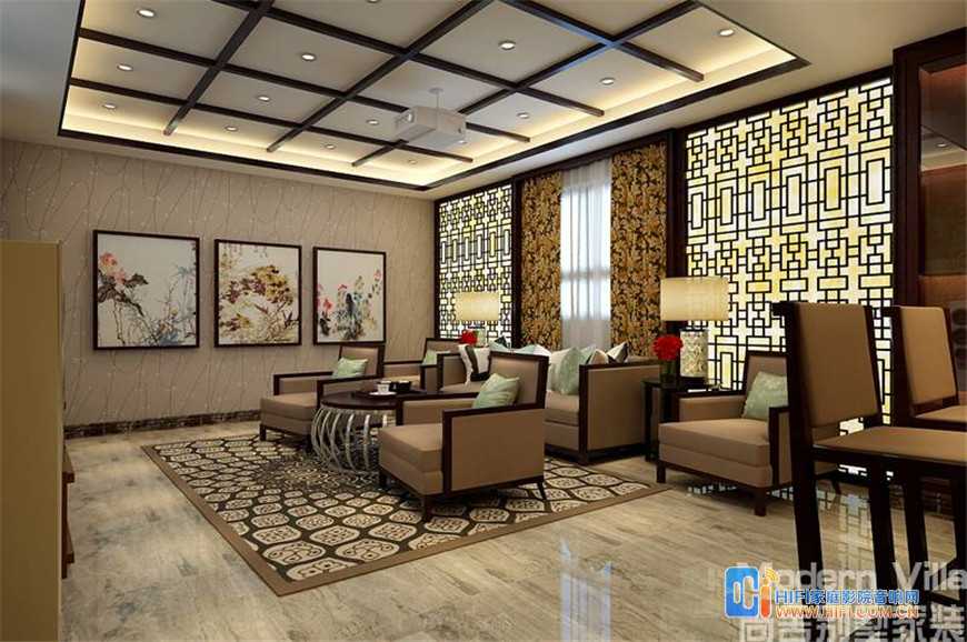 简约中式风格别墅家庭影院吊顶装修图片+简约风格沙发图片