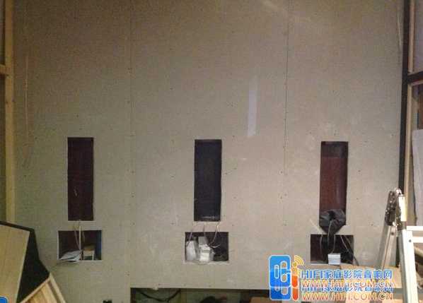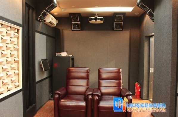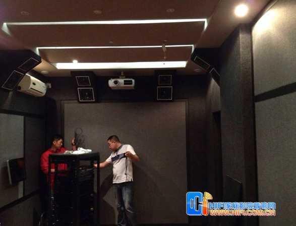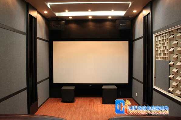 7.1声道的配置,前置、中置声道采用尊KEF墙式音箱CI200QL,幕布是美视106寸画框幕。