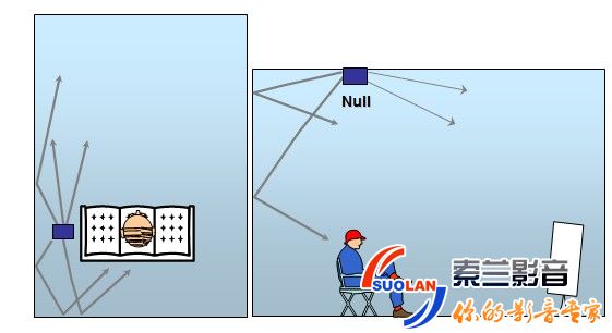 - 安装在侧墙壁或者天花板上,空信号NULL对着听众