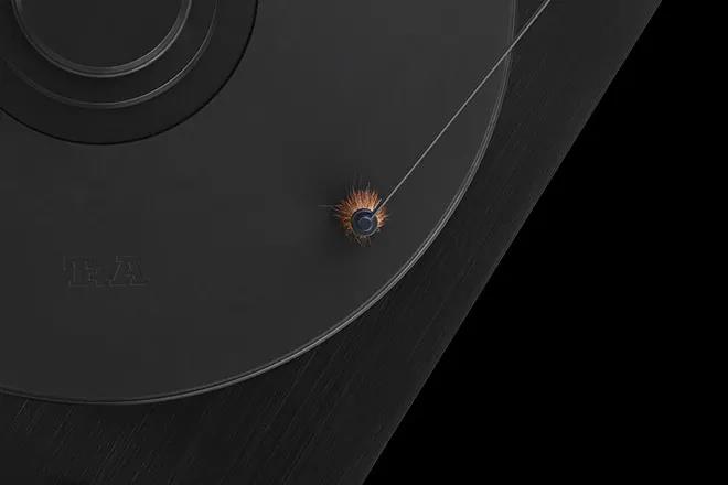 创建一个整体的机械阻尼系统,最大程度地减少物理机械结构的声音,共振效应和振动,采用实心MDF箱体,转盘安装在4个减震器上,铝制外壳采用夹层结构,可抑制与吸收共振频率。精密加工重型转盘,具摩擦力的转盘表面可避免唱片与转盘产生振动,且原厂更提供硅橡胶唱片垫可以用来隔离转盘与唱片。中央的黄铜衬套与经过抛光的不锈钢轴承的精度公差小于5μm。