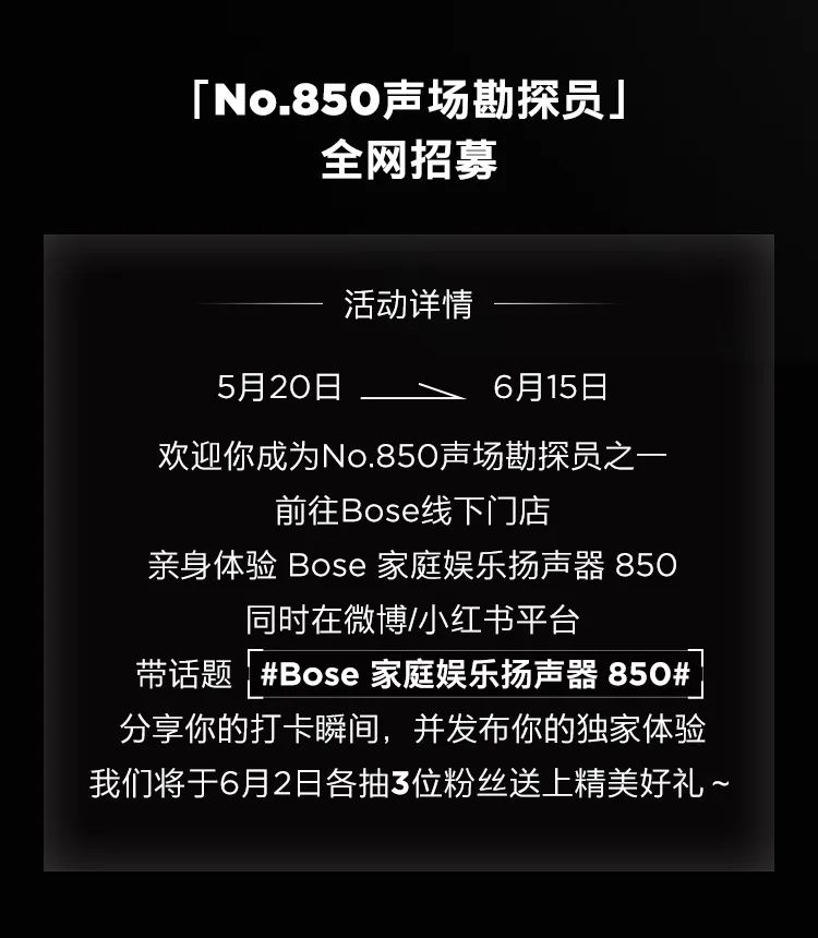 全新Bose 家庭娱乐扬声器 850 震撼上市!