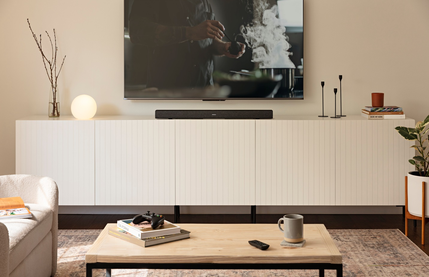 Denon DHT-S217回音壁的整体高度不到2英寸,可直接放置在电视前面,且不会挡住屏幕的底部边缘,也可以轻松地壁挂安装。得益于Denon天龙音响百年来一直致力于创造超凡的家庭娱乐系统的实力,此次DHT-S217外形设计得低调且具质感,能够很好地融合各种家居设计风格,而其优越的性能——杜比全景声加上双下射式低音炮以增强低音效果,无缝匹配一对高性能中音驱动器和高音单元,呈现出无与伦比的沉浸式3D音频体验。另外,其蓝牙传输也十分便捷,可以轻松地将喜爱的音乐从智能手机或平板电脑上投射到回音壁上播放,让音乐清晰的充满整个房间。