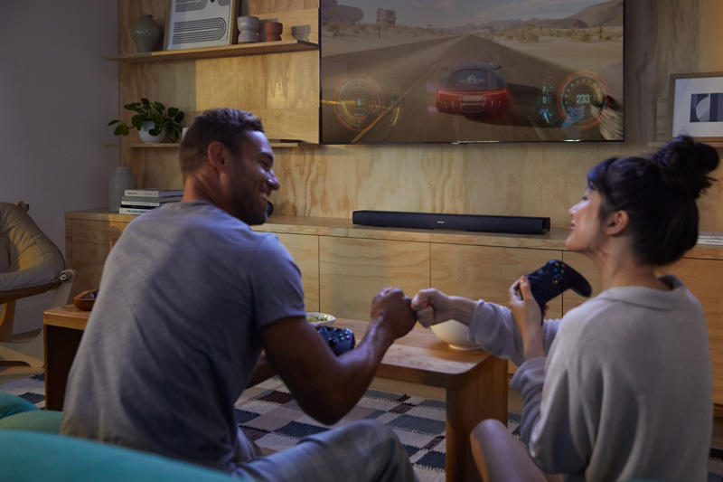 低调内敛的DHT-S217可将任何电视升级为家庭娱乐中心,内置两个大功率下射式低音炮和杜比全景声3D音频技术,无需加配独立低音炮,即可尽享精彩的环绕立体声体验。