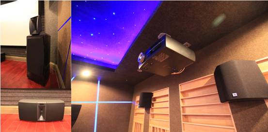 本案的业主对于影音方面的要求还是非常高,我们之前在碧水做的一个影音项目同样采用高标准建声处理和多声道影院系统加卡拉OK娱乐系统。本案业主要求的是同样的功能但对于器材的选择特别用心。为此业主几乎跑遍北京去认真对比和体验。最终在索兰影音选定了用美国JBL至尊ARRAY系列音箱作为影院使用,卡拉OK则选用法国APG专业音箱。