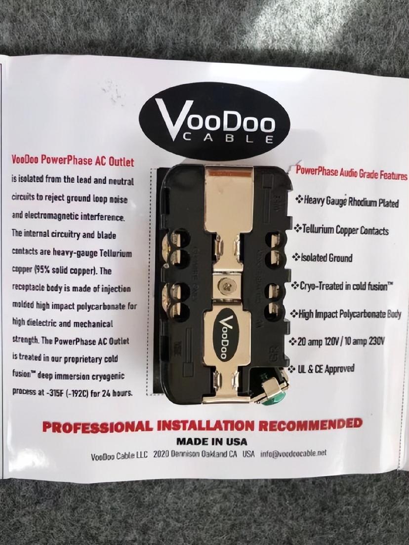 从用户的实际听感反馈来看,VooDoo旗舰款镀铑插座整体中性偏素,不会改变系统音色。在音乐细节、层次感、透明度、凝聚力都有很好的提升,低频的弹性和质感也更佳,适合用于CD机、数播、解码等音源设备。