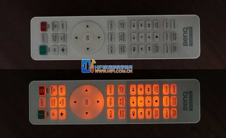 明基轻4K家用投影机W1700在遥控器设计上也是非常人性化,除了按键布局合理之外,还加入了夜光显示,方便用户在暗环境下操作。