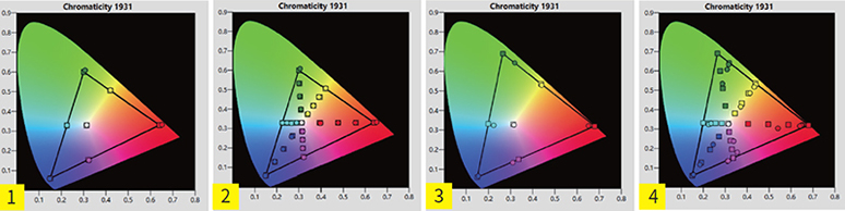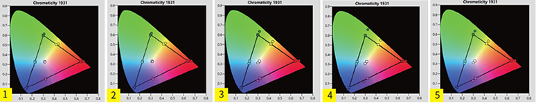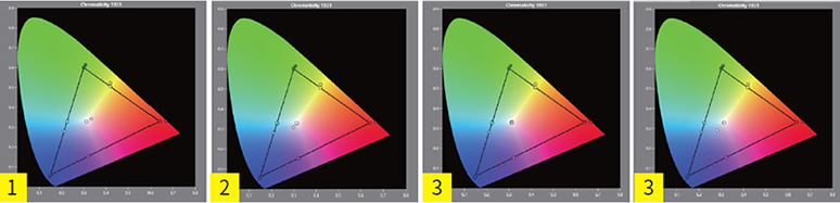 图2:此为SDR(非HDR)的状态下,投影机色域内部线性均衡性测试图,可见25%、50%、75%的饱和度都有极佳的表现,色彩拥有相当突出的色彩还原准确性