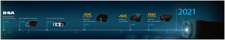 JVC在2016年发布采用独家D-ILA技术的家用原生4K投影机DLA-Z1。2018年在此基础上,推出全球首款对应8K显示的家用投影机DLA-N11,并搭载动态逐帧适应HDR功能,获得市场好评。