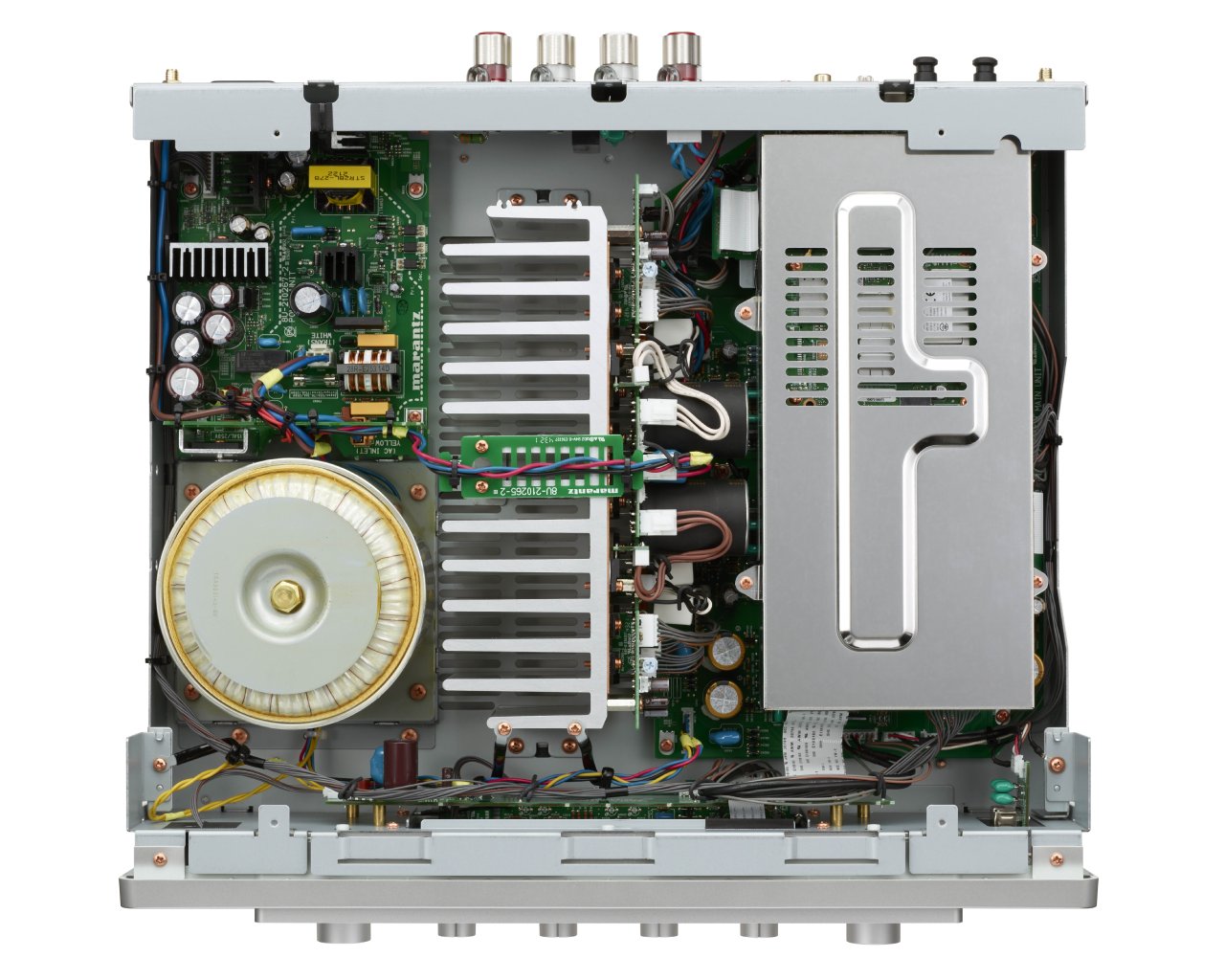 前置放大器部分是一种可变增益型,配备了马兰士独创的高速电压放大模块HDAM(R)/HDAM(R)-SA2。与2017年发布的“PM8006”相比,实现了45%的降噪。并联推挽功放部分为全离散电流反馈型,实现了压倒性的扬声器驱动功率。电源电路采用同类最大的环形变压器和定制电容,实现了充足的供电。