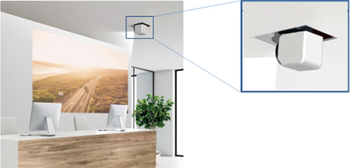 (2) 采用“双轴旋转超短焦镜头”可从镜头卡口轴旋转90度,镜头轴可旋转360度。具有在不移动机身的情况下向各个方向投影图像的能力,不仅可以轻松投射在墙壁和屏幕上在天花板和地板上同样可以呈现。它还可以通过隐藏机身部分来营造身临其境的沉浸空间。在进行空间设计时,最大限度地实现设计师的设计意图 。