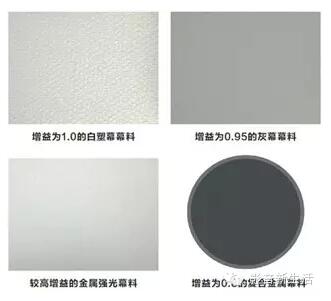灰幕则是在白幕基础上改良的幕料,能吸收更多的环境光,这样能让投影幕上的黑位更扎实,黑白之间的差距也会因此拉大,从而达到了提高对比度的目的,但灰色的幕料会改变其他色彩的表现,带有一定程度的色染。金属幕则是完全针对恶劣环境而使用的投影幕,无论在黑暗或光亮的环境下都能获得良好的色彩与细节表现。