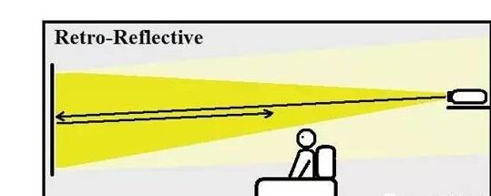 回归型与反射型幕布则属于带增益的幕布。回归型幕布将入射光线向投影机的方向集中反射,入射光线与反射光线之间并没有夹角,只适合水平投射方式,例如座位前后平投的方式。反射型幕布则是入射光线投射在投影幕后会出现一定的折射角,不能采用水平的投射方式,必须根据折射角的大小选择吊顶或者置地的投射方式。