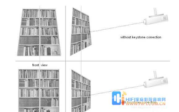 在安装的过程中,必须避免投影画面出现梯形失真。毕竟,使用投影机内部的梯形校正(Keystone)功能会对投影画面的色彩、细节造成影响,以及降低分辨率等,从而影响整个投影效果。其中特别需要注意投影机的水平问题,有条件的用户最好使用精准的水平仪进行校准。虽然镜头位移(LensShift)功能不会影响投射画面的失真,但是会导致输出亮度的降低,因此建议大家尽量使用物理升高或降低的方法来调整投射的画面。