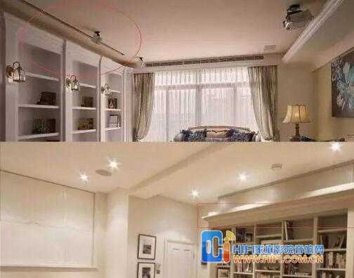 第一个家庭影院音箱方案使用了BOSE,而BOSE专卖店里基上就是这么一个安装方式,所有的对白的音效全部从天上下来。