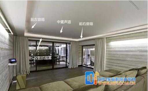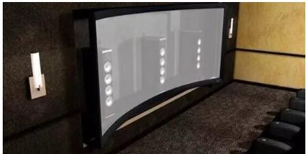 这是商业影院和高端家庭影院中常用的透声幕方案,为了得到更大的画面和完整的视觉效果,他们喜欢用透声幕把箱子隐藏起来。