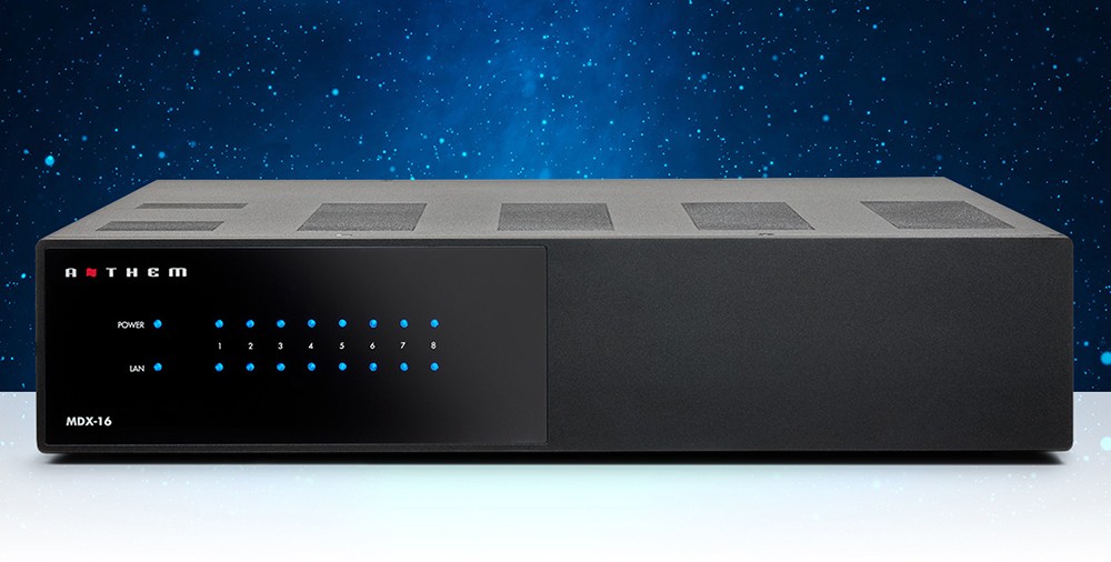 Anthem MDX-16 是一款专为多区域驱动而设计的多声道后级放大器,它分为 8 区 16 声道,每区都是一组立体声配置,并皆具有模拟RCA 立体声输入和 RCA 超低音输出,意即每区都能架设成 2.1 声道系统。此外,其中某些区域兼具光纤输入或同轴输入,某些区域则提供光纤输出或 RCA 模拟输出,使 MDX-16 能够因应不同需求做出很弹性化的配置,活用性十足。