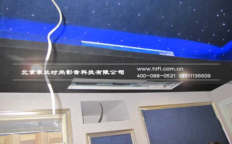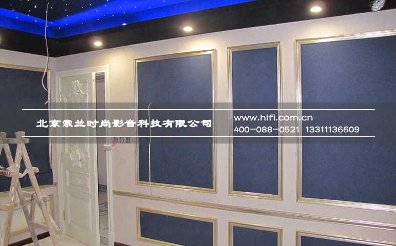 对于房间高度会产生中高频反射的问题,在家庭影院设计时将顶面设计为星空顶,提升房间炫丽浪漫的氛围,同时具有中高频吸收功能的吸音板可以有效解决这一问题。
