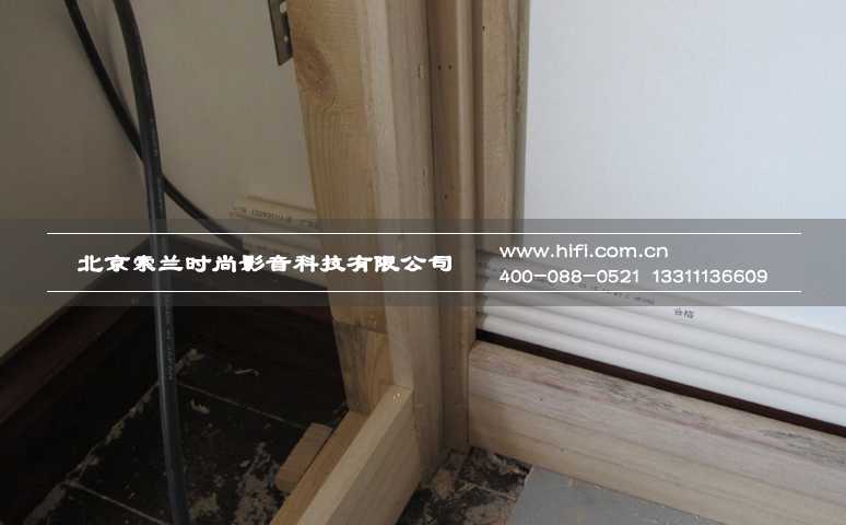 前墙采用嵌入式透声结构,与以往KEF CI嵌入式音箱不同,这次客户选用的是MK音箱。从音箱安装位置的固定盒可以看出,这次采用的嵌入式箱体比较厚。而房间长宽比例,也能给前墙足够的空间打造加厚的嵌入式透声结构,当然这与落地式音箱的大空腔透声结构相比,所占用的空间还是少了近三分之二,能满足客户保留更多使用空间的要求。