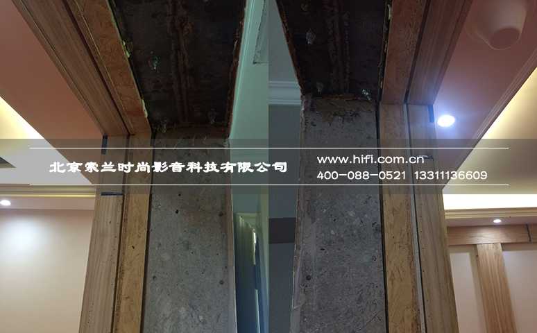 此次私人影院装修工程采用欧式框线元素风格,整体分布以声学模块尺寸为基准平均分配,中间分割形成低频减震箱结构,对房间内可能出现的低频缺陷起到克制作用,现场还要考虑原有线路结点,控制好音箱等设备的安装位置。