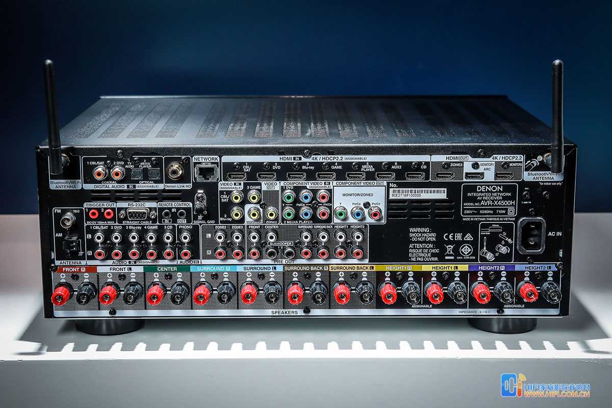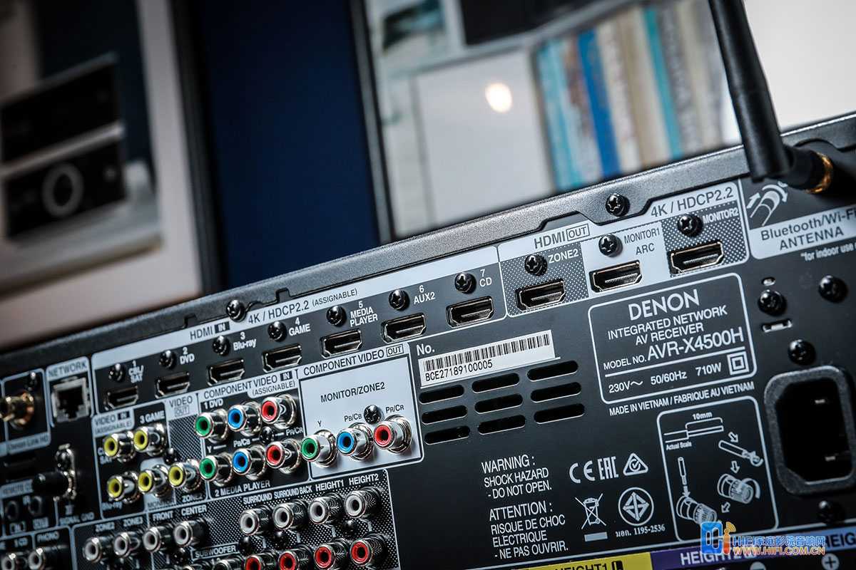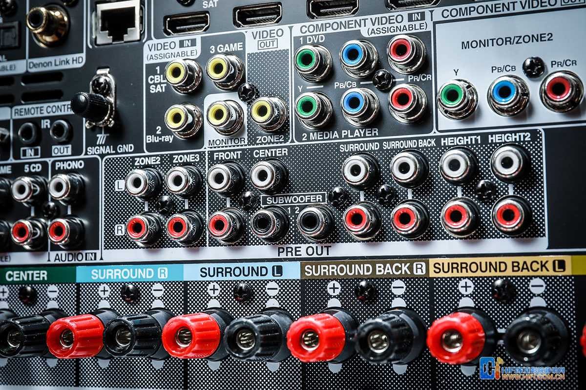 升级了自家的High Current EI火牛,配合AVC-X8500H和系列的高质电容等配件,有效进一步提升扩音机的表现。AVR-X4500H 机背。11.2 声道的Pre-out 也都有配备,可以作为前级使用。虽然本身只是9.2 声道放大输出,不过也有11.2 声道喇叭接驳,连接方面更方便。