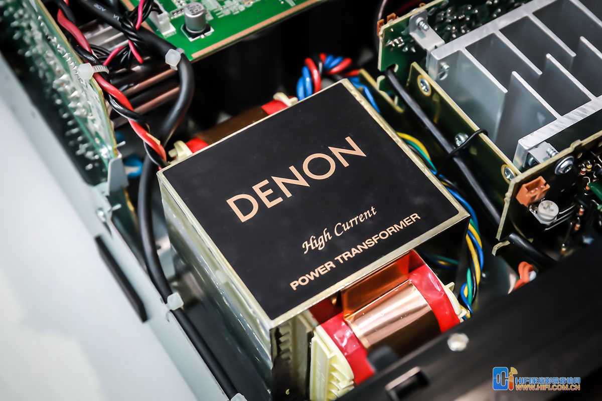 对于扩音机来说,电源和机身稳定性好重要,所以Denon 这次都着重在这两方面作升级。虽然定位是中阶机款,不过就用到了舰旗机AVC-X8500H 的和系列配件,包括一对15,000μF Nichicon 定制大电容、高速Schottky 整流子、由上代47μF 升级至100μF 的ELNA 输入电容,前级供电就由原本4700μF/16V 改用更大的6800μF/25V ELNA 高质电容。此外,和AVC-X8500H 一样将音量电路输出阻抗由47Ω 调整为0Ω,而且也升级采用了自家的High Current EI 火牛,全部都有助让音效更有力、干净、通透。这次机身除了1mm 厚钢底板之外,在火牛和后级电路下面更加入一片和为1mm 厚的钢板,让扩音机运作时更稳定,谐振和干扰更少。