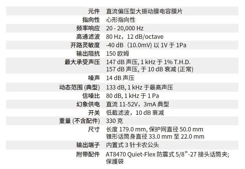 AE5400提供出色音质,与经典的AT4050录音棚话筒采用相同的电容收音元件,该直流偏压型大振膜电容膜片可确保准确、自然的响应。