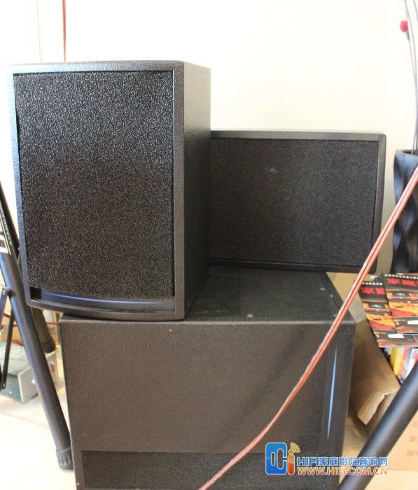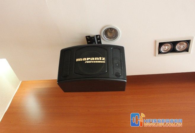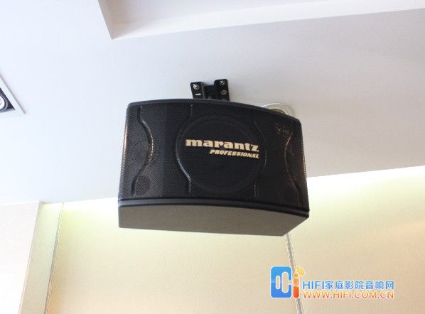 在等离子的正上方采用吊挂方式安装的卡拉OK 音箱是马兰士的MKSlOOO。后面还悬挂着一对MKS800作为补声音箱。