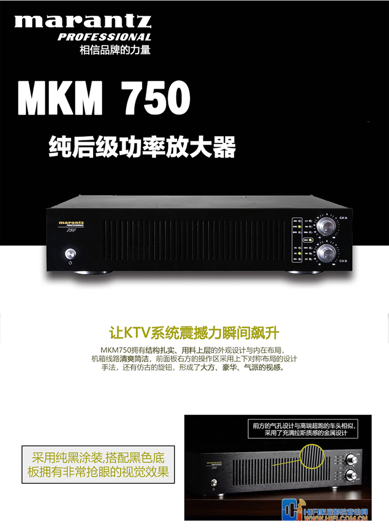 MKM750拥有结构扎实用料上层的外观设计与内在布局。机箱线路清爽简洁。前面板 前面板右方的操作区采用上下对称布局的设计手法。还有仿古的旋钮,形成了大气豪华气派的视觉感。