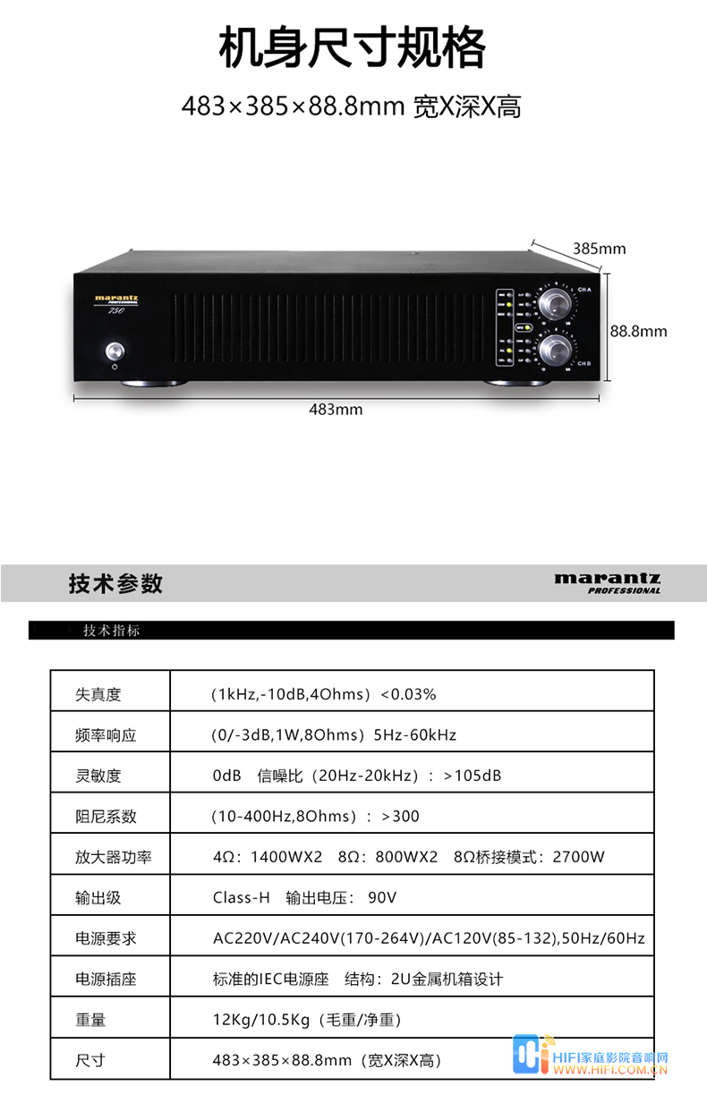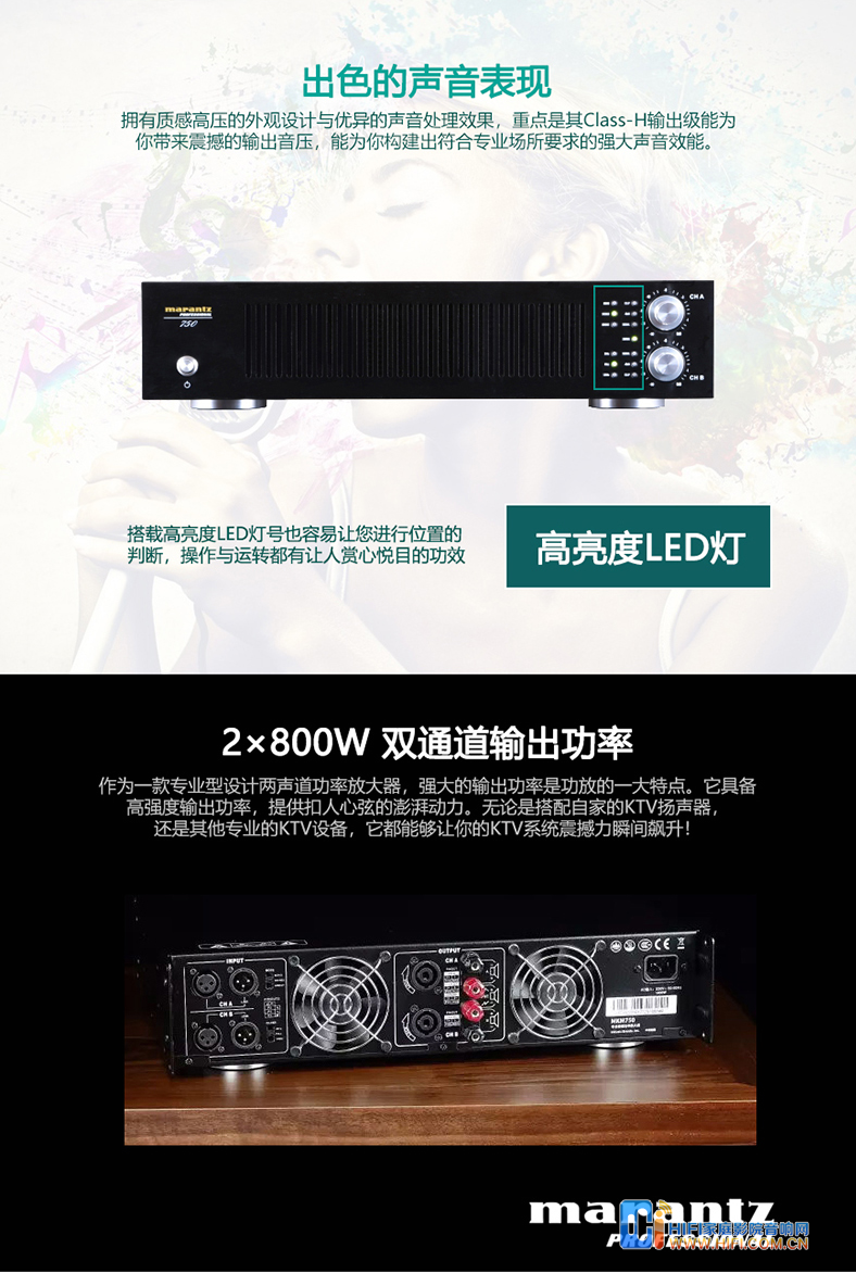 日本 Marantz 品牌,有着悠久的历史,专注于生产高端的音响设备,包括民用和专业类别。在世界上获得一致好评,无论效果和品质,都像它的金色标牌一样,辉煌尽现!早在日本本土发源卡拉 OK 活动的时候,Marantz 就已经凭借自身雄厚的技术能力和高质素的得市场的认可和赞誉,继而推向全世界。