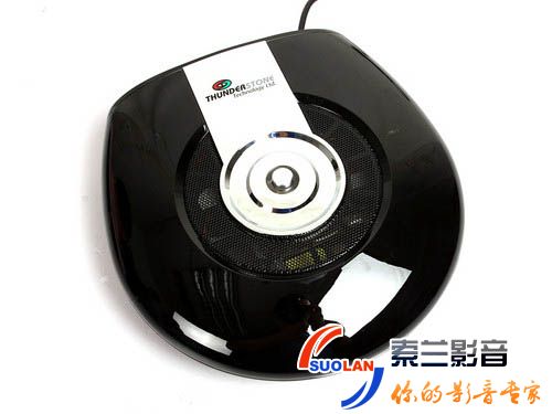 机身顶部中间部分为电源开关,周边为银色,整体的外观风格非常时尚。打开电源之后开关按键周围将出现蓝色灯光。为了更好的散热,机身在顶部和底部都设计了散热孔,另外底部还设计有橡胶脚垫。