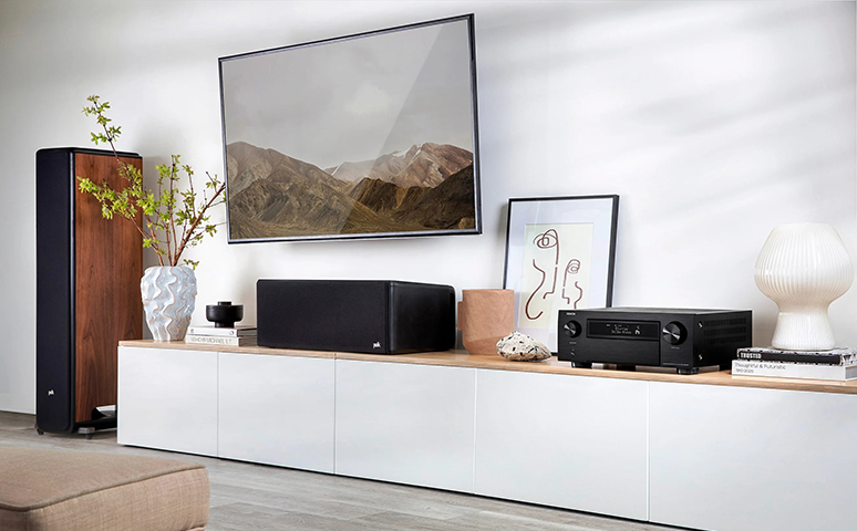 前置扬声器支持Dolby Atmos和DTS:X Pro 13个声道: 在9.1.2或9.1.4的扬声器设置中,前置扬声器可再现更加无缝环绕的舞台音效。