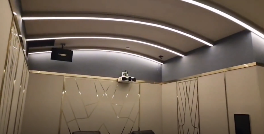 房间的声学处理保证混响符合THX的推荐指标。隔音效果由于使用了声盾的D55隔音门,所有室内可以降到28分贝的静寂空间。体验影片中其他环境感受不到的音响细节。