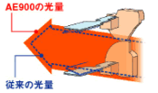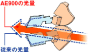 AE900产品,在光学系统中,采用了松下公司独有的光圈可变型光圈连动机构,此机构和SONY的HS50、HS60等产品其基本原理相同,被称之为dynamic iris,能根据画面的明亮变化,适时调整光圈,控制光量,每1/60秒,光圈、光源LAMP的光量、以及伽马数据等进行相互制约和作用。