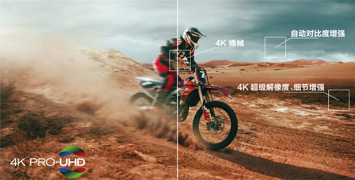 基于4K超高清画面的图像处理能力,4K帧补插、智能降噪、细节增强,为好画质保驾护航;