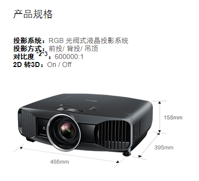 爱普生的水晶高清液晶面板,可以投影出更深的黑色,更清澈的白色,当自动光圈打开时,对比度高达600000:1*2*3,输出更完美的全高清影像。