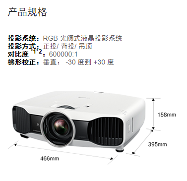 爱普生的水晶高清液晶面板,可以投影出更深的黑色,更清澈的白色,当自动光圈打开时,对比度高达600000:1*2*3,输出更完美的全高清影像。