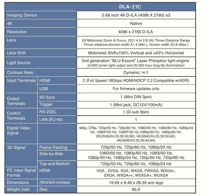原生4K激光影院投影机ZEUS DLA-Z1C 业界初THX 4K Display认证