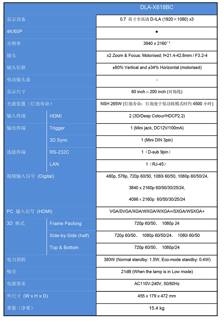 JVC DLA-X618BC参考级电影投影机